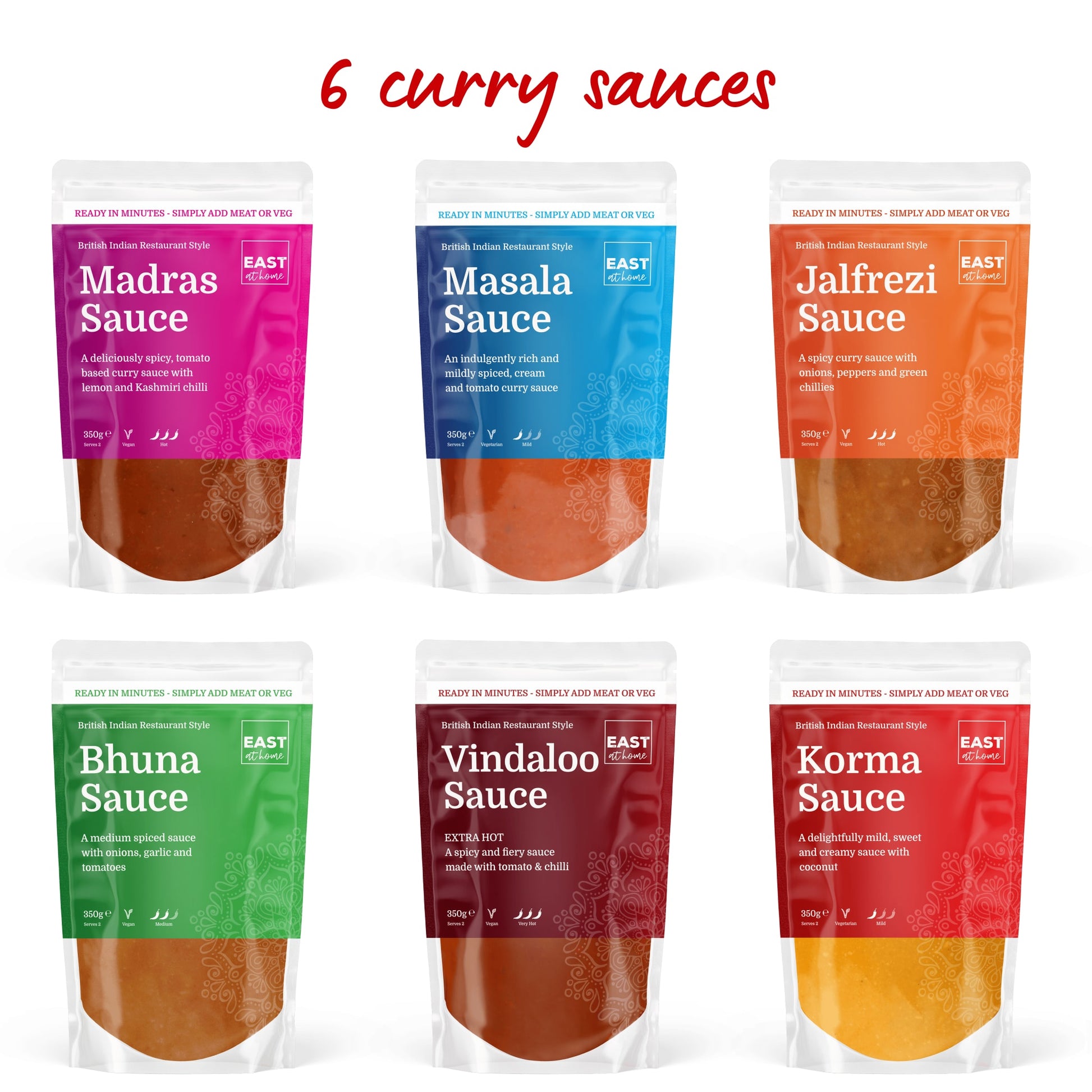 6 heat and eat curry sauces: